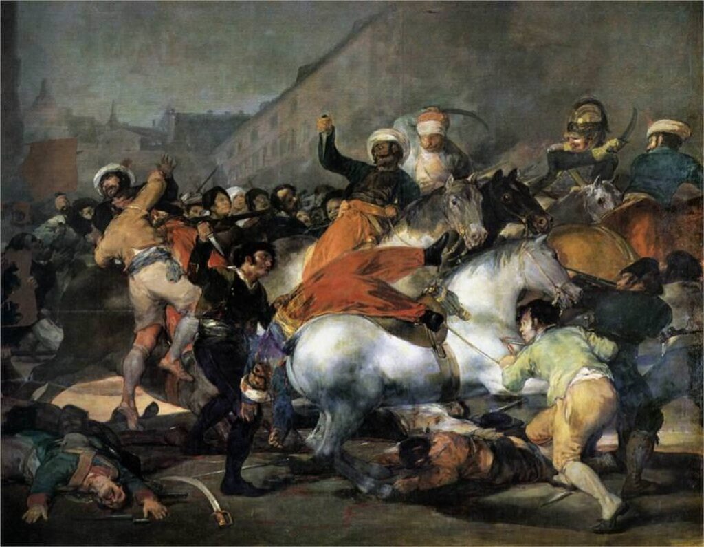 De bloedige Napoleontische invasie vanaf 1808 is terug te zien in zijn werken, met name in de serie etsen Los Desastres de la Guerra, de gruwelen van de oorlog, die hij in de jaren 1810-1814 maakte. Ze tonen de gruwelen die van beide kanten werden begaan.