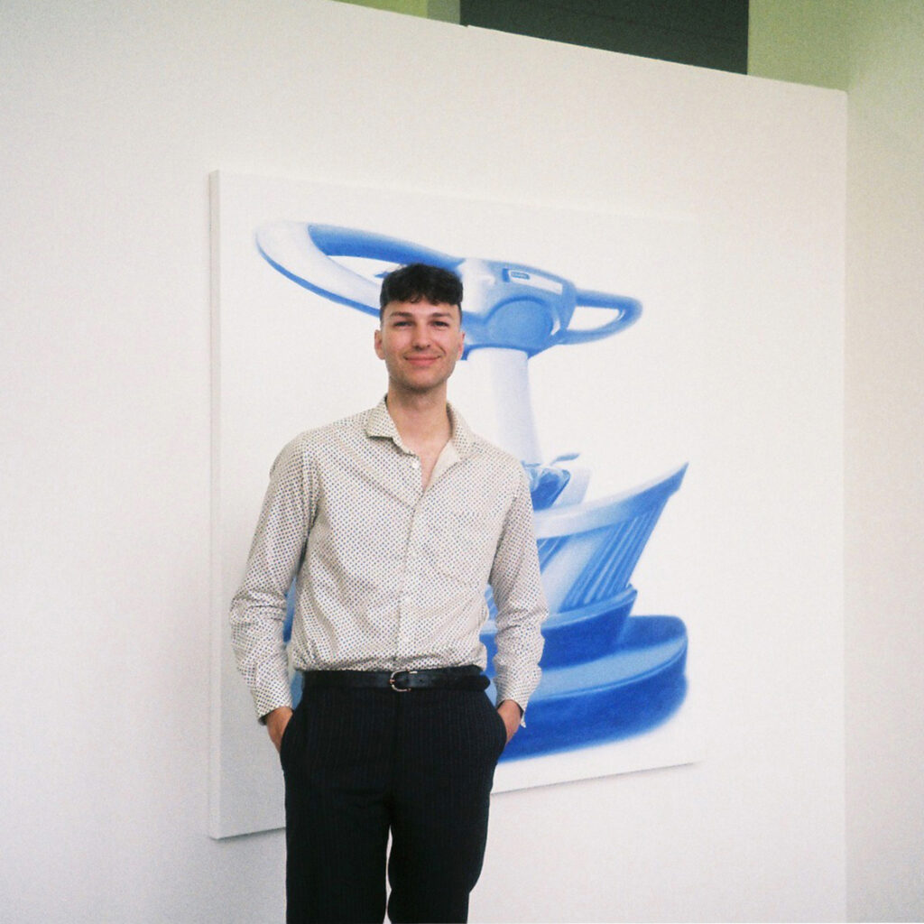 Dat ontstond bij het afstuderen bij de Koninklijke Academie, vertelt hij. “Ik ging aan het eind van mijn studie werk maken dat dichtbij mezelf stond. Ik werk sinds mijn 15e als vloerreiniger. Ik was op zoek naar een onderwerp. Als je naar schilderijen kijkt voel je of iets echt is. Bij dit onderwerp vielen alle puzzelstukjes ineen. Ik merkte dat het oprecht en eerlijk was, met iets waar ik van hou.” De serie waar hij mee afstudeerde heette ‘Een ode aan het vloerenreinigen’.