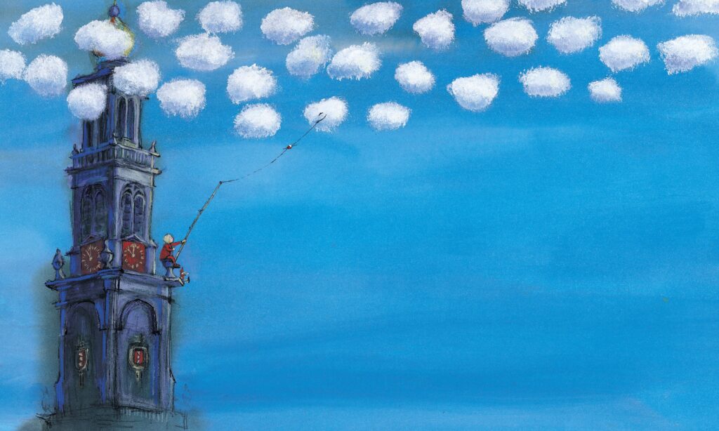 Afbeeldingen: 1) Marit Törnqvist, illustratie, detail, voor boek Schildpad en ik, Querido 2022 , 2) Marit Törnqvist, illustratie Wolken voor boek Jij bent de liefste, Querido 2000 , 3) Marit Törnqvist, illustratie voor boek Pikkuhenki, Querido 2005 , 4) Marit Törnqvist, illustratie voor boek De rode vogel, Hoogland en van Klaveren 2012