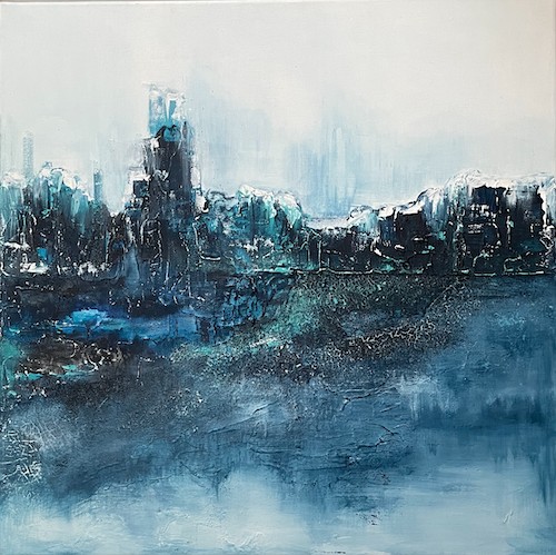 When she starts painting, she has no plan, she says. “I start with whatever comes to mind. Emotion is the guiding principle. I like paintings with a square format. In my series ‘Behind the Light’, a series of 16 paintings, the side of the canvas is painted gold. This makes it look just as if there is a light behind it.”
